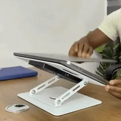 Fini les douleurs et la fatigue. Avec ce support, tu travailles à la bonnehauteur, tu gagnes en efficacité et ton ordinateur dure plus longtemps.En plus, son design moderne en métal ajoute une touche professionnelleà ton espace de travail. C'est l'accessoire indispensable pour ceux quiveulent allier confort, style et productivité.